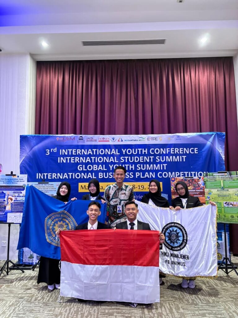 Kuala Lumpur, Malaysia | Prestasi membanggakan kembali diraih oleh mahasiswa Fakultas Ekonomi dan Bisnis (FEB) Universitas Muhammadiyah Semarang (Unimus) di kancah internasional. Dua tim mahasiswa berhasil menorehkan prestasi gemilang dalam ajang Essay International Competition yang diselenggarakan oleh International Young Conference (kolaborasi Nusantara Prisma X Universiti Putra Malaysia) dan International Student Summit (kerja sama Sentosa Foundation X Universiti Sains Islam Malaysia).